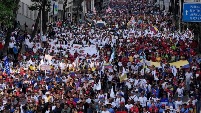 Miles de chavistas se movilizaron este martes para exigir la liberación de Nicolás Maduro, a un mes de su captura en un operativo estadounidense el 3 de enero.