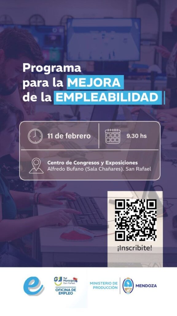 La iniciativa es impulsada por el Ministerio de Producción, a través de la Subsecretaría de Empleo y Capacitación y la Delegación Sur, en articulación con la Oficina de Empleo de la Municipalidad de San Rafael y la Cámara de Comercio, Industria y Agropecuaria de San Rafael.