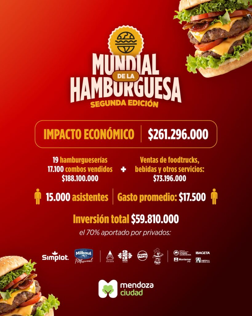 Esta segunda edición del Mundial de la Hamburguesa alcanzó un impacto económico total de $261.296.000, lo que representa un incremento del 72% respecto al realizado el año pasado.