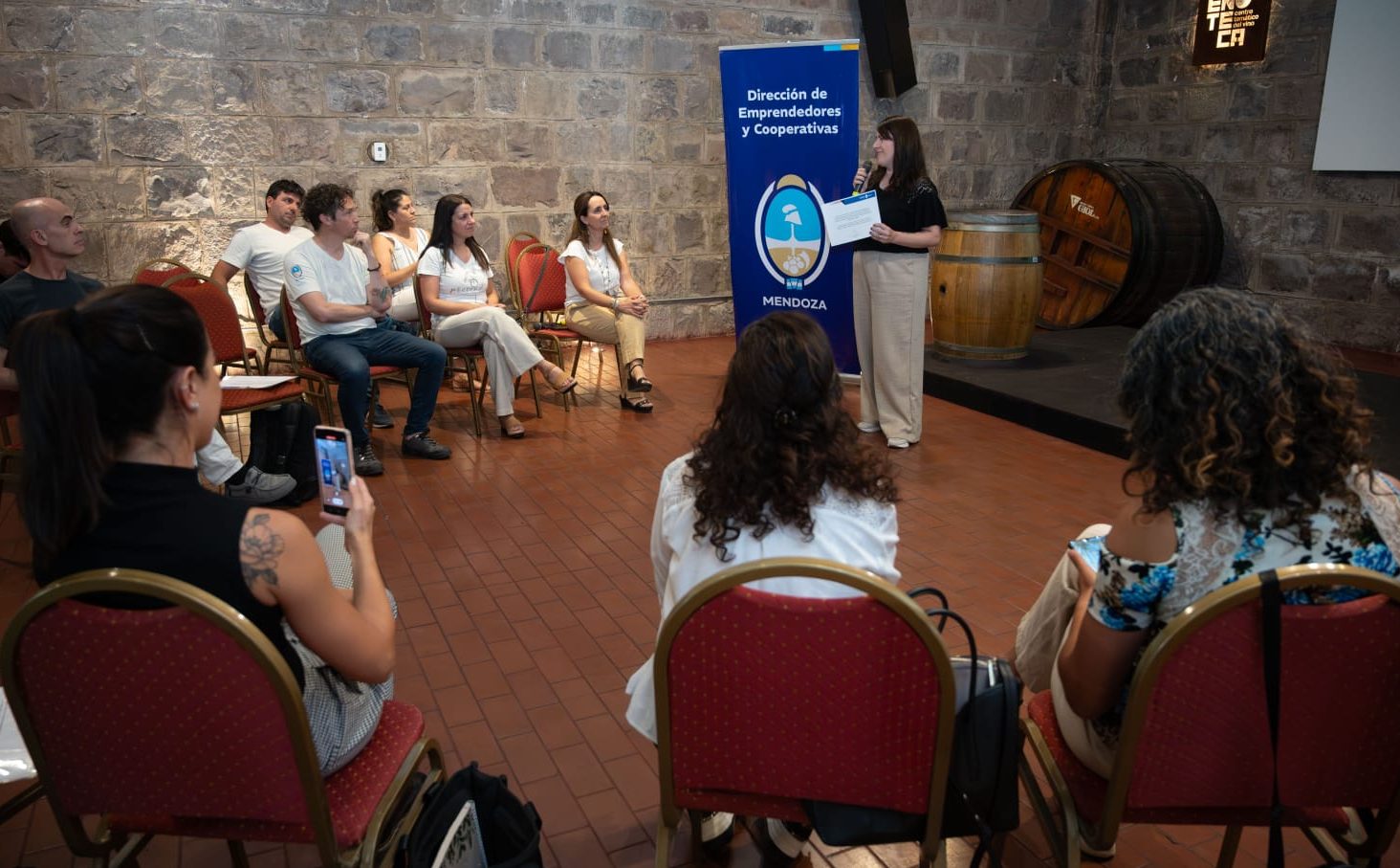 La directora de Emprendedores y Cooperativas, Andrea Nallim, participó en la entrega de certificados a 12 emprendedores que completaron el programa Mendoza Emprende Acelera, una iniciativa del Gobierno de Mendoza orientada a fortalecer proyectos con capacidad de crecimiento y proyección internacional.