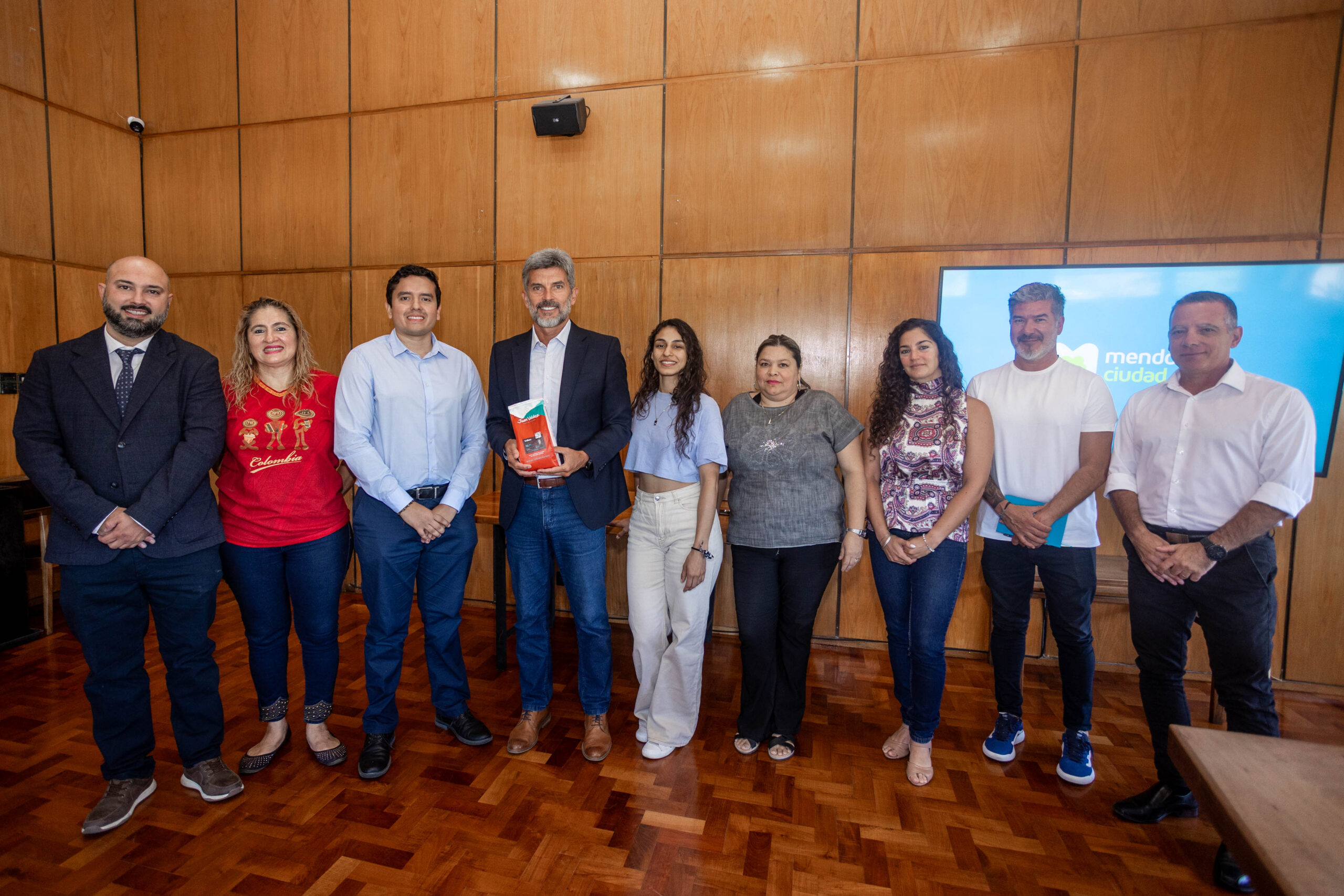 El encuentro se realizó en el Salón Amarillo del Edificio Municipal y contó con la participación, por parte de Colombia, del cónsul general Daniel Torres y de las referentes de la comunidad colombiana en Mendoza, Yamilet Figueroa Córdoba y Mary Lady Sánchez López. En representación del municipio estuvieron presentes, junto al intendente, la concejal Cielo Daou; el responsable de Relaciones Internacionales, Franco Gennari; el coordinador de Intendencia, Adrián Burgos, y el director de Cultura, Iván Martínez.