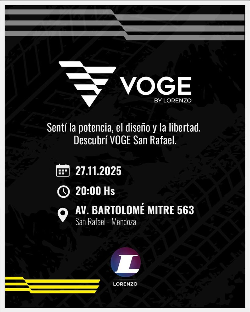 El Grupo Lorenzo anuncia la apertura oficial del nuevo concesionario Voge by Lorenzo en San Rafael, consolidando así su expansión en Cuyo y reforzando su compromiso con el segmento de motocicletas premium. La compañía, que ya representa a la marca en la provincia de San Luis, apuesta ahora por el sur mendocino con un espacio moderno, especializado y pensado para acercar toda la gama Voge a los usuarios de la región.